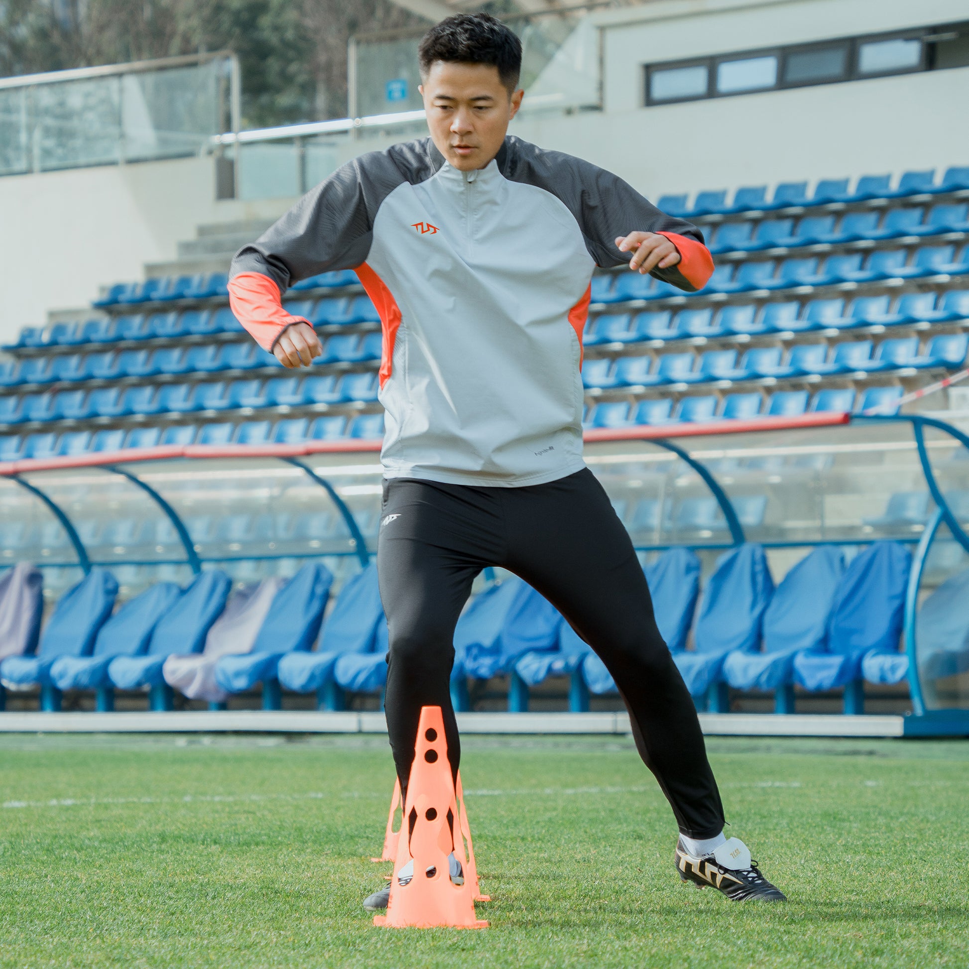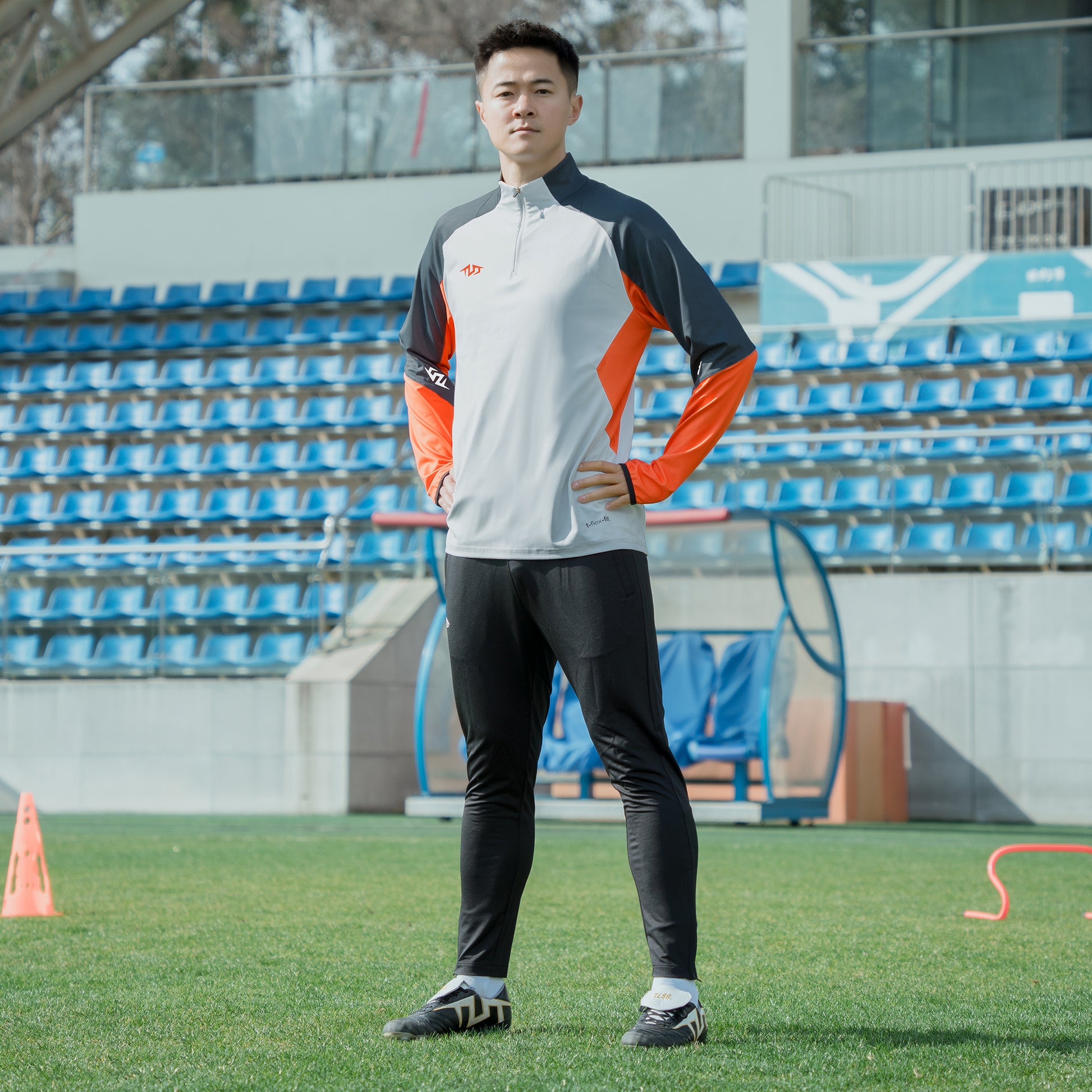 1.Urban-inspired football techwear with climate-responsive design. Weather-ready half-zip construction and strategic ventilation maintain dry comfort through rain drills or turf sessions.
